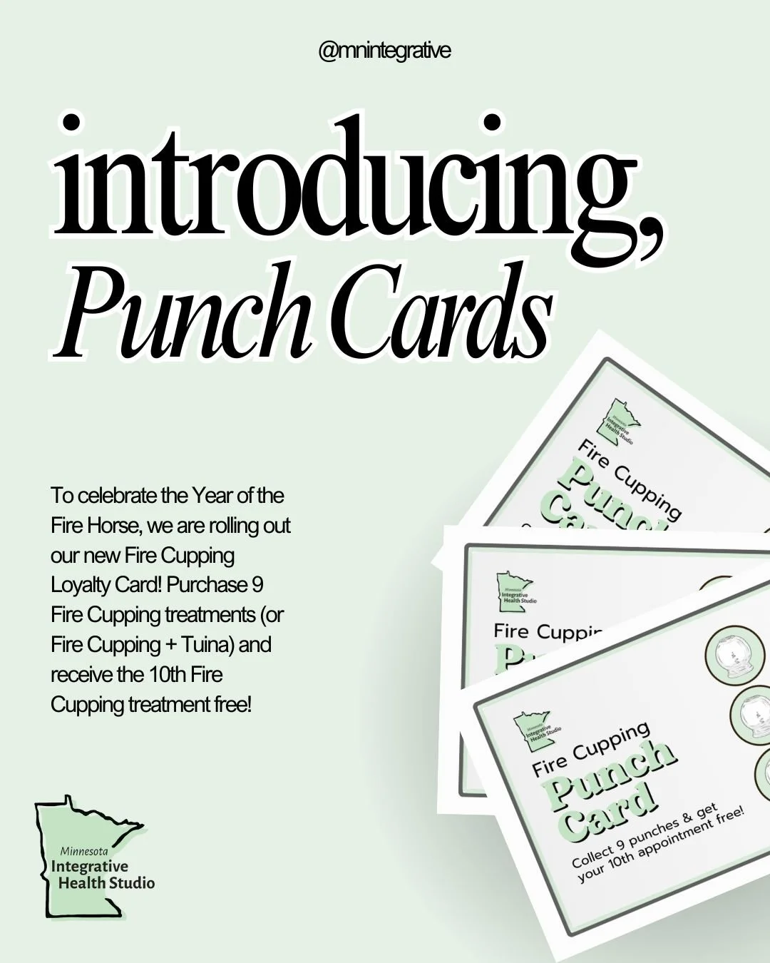To celebrate the Year of the Fire Horse, we are rolling out our new Fire Cupping Loyalty Card! Purchase 9 Fire Cupping treatments (or Fire Cupping + Tuina) and receive the 10th Fire Cupping treatment free!